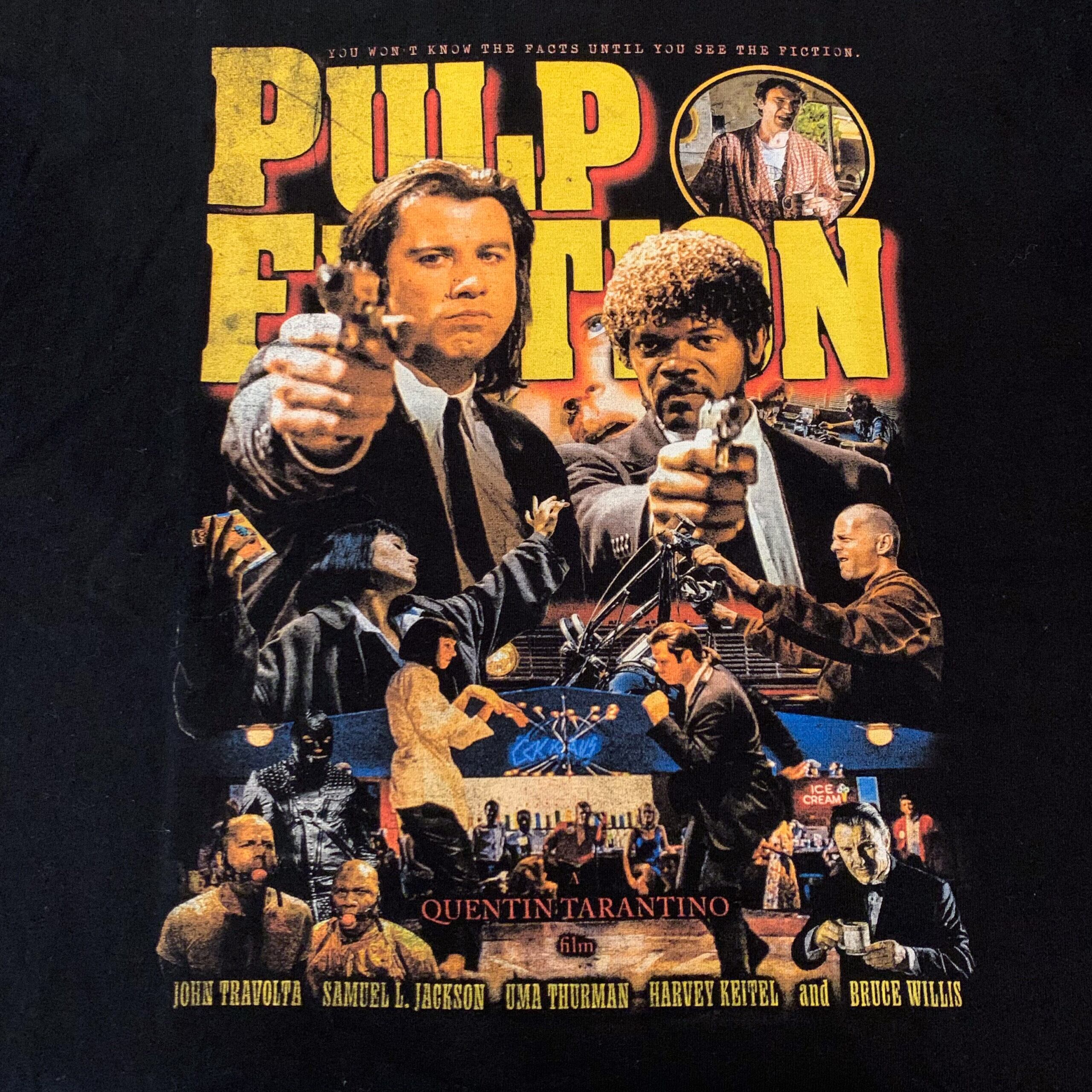 奇才クエンティン・タランティーノの人気を不動の物にし、公開直後から現在に至るまで様々なアーティスト、クリエイター達に多大な影響を与え続ける1994年公開作品「PULP FICTION」(パルプ・フィクション)のVINTAGE HOMAGE TEE。